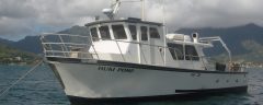 The ‘Huki Pono’, meaning pull correctly, is SEI’s 43-foot twin screw workboat set up to support diving and marine survey operations in the Hawaiian Islands. The vessel has two steering stations and a large, air-conditioned deckhouse ideal for use as a support center for survey or ROV operations.